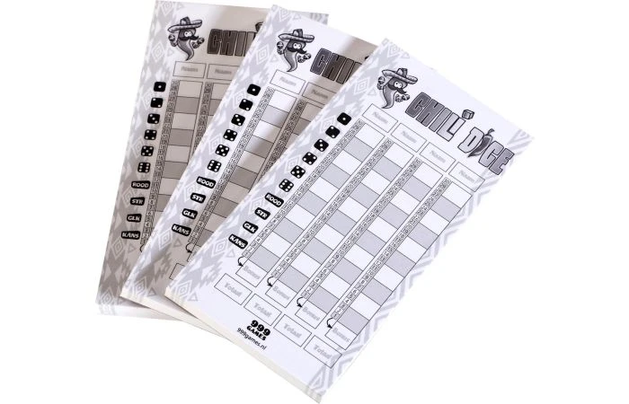 Heb je al zoveel Chili Dice gespeeld dat je al door je scoreblokken heen bent? In dit pakket zitten drie aanvullende scoreblokken waarmee alle spelers die hun blok vol hebben gespeeld weer vooruit kunnen!