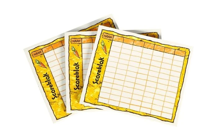 Zoveel Konijnenhokken gespeeld dat je scoreblok bijna leeg is? Geen nood, met deze extra scoreblokken kun je weer een tijd vooruit!