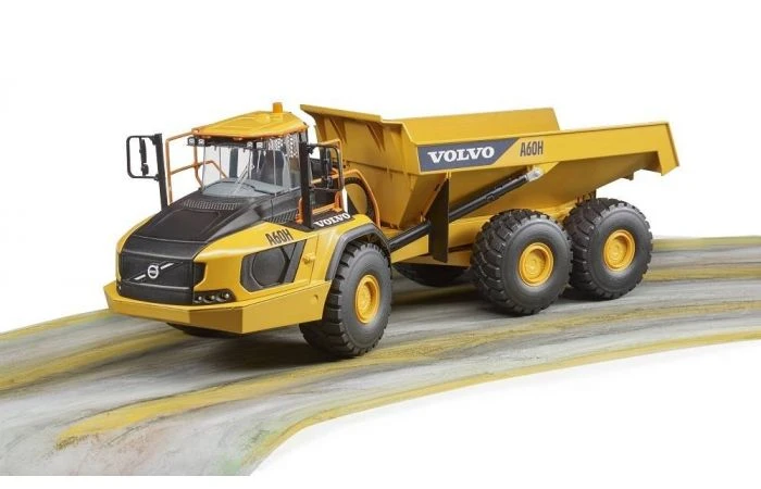 Een van de sterkste dumpers, de Volvo A60H, is nu te vinden in de wereld van machinebouwers van BRUDER. Net als bij het grote model is de off-roadcapaciteit voorbeeldig dankzij de enorme knikbesturing in combinatie met de enorme ballonbanden.