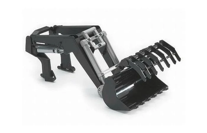 Deze Bruder frontlader kan bevestigd worden zonder het gewicht aan de voorkant te verwijderen. De grijper kan ook afzonderlijk verwijderd worden.