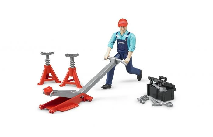 Na een lange dag hard werken op het land ben je toe aan je welverdiende rust, maar, je voertuig verdient dat natuurlijk ook! Stal je tractor, vrachtwagen of bulldozer in de garage van Bruder om hem na te laten kijken door de monteur. Samen met zijn accessoires heeft de monteur binnen no-time alles gecontroleerd en gerepareerd als het nodig is. Dit voertuig is op een 1:16 schaal gebouwd en is, dankzij de uitmuntende details, net echt!