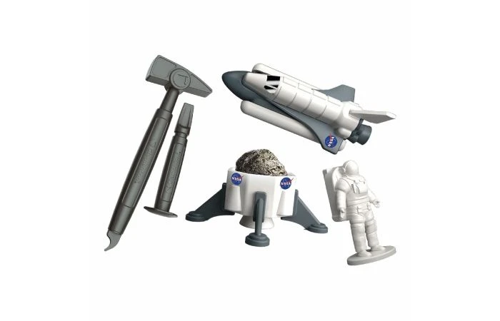 De set bevat een gipsen baksteen, hamer en beitel om een shuttle, lander, astronaut en fragment van een meteoriet uit te delven! Bouw de shuttle en de lander en ga als een echte astronaut op een geweldige missie! Een handleiding met veel wetenswaardigheden over de missies waarmee de mens de ruimte heeft ontdekt! Wordt geleverd in full-colour doos en is geschikt voor kinderen vanaf 6 jaar.