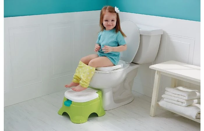 Zindelijk worden was nog nooit zo leuk! Dit Fisherprice potje groeit mee met je kind: van een potje met vier koninklijke melodietjes tot een verwijderbare toiletbril voor op het echte toilet. En als je kind wat ouder is, kan het potje worden gebruikt als een krukje, bijvoorbeeld om bij de kraan te kunnen. Dankzij de handvatten kan je kind veilig en comfortabel op het potje zitten. Het potje heeft een plasschermpje voor jongens en de binnenpot is makkelijk schoon te maken. Als je kind klaar is voor het echte toilet, kan de bril van het potje op het toilet worden gebruikt. De bril past op de meeste toiletbrillen. Wordt inclusief 1 AA-batterij geleverd met sleeve. Maximaal draaggewicht: 90 kg.