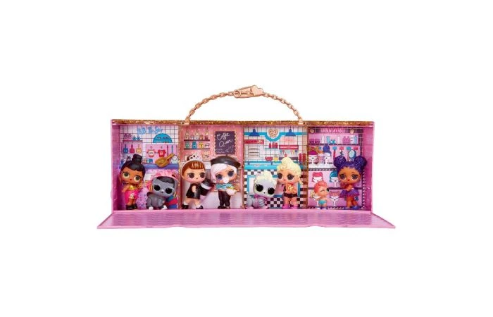 Deze LOL Surprise Miniwinkel-speelset is een 3-in-1 speelset, display en draagtas in één. Neem je poppen mee naar de stad! De speelgebieden zijn een chique café, boetiek en pizzarestaurant. De display kan meer dan 55 poppen en accessoires bevatten. Inclusief exclusieve L.O.L. Surprise!-pop. Een geweldig verjaardagsgeschenk voor kids of cadeau voor elke gelegenheid. Perfect voor creatief en fantasierijk speelplezier voor kinderen. Wordt geleverd in full-colour doos.