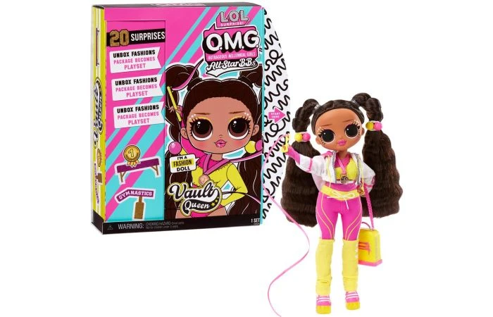 OMG! Wij zussen staan klaar om te winnen. Ik heet Vault Queen en ben dol op turnen! Mijn wereld staat op z’n kop… als m’n landing maar goed is! Vault Queen is inclusief 20 verrassingen met een compleet unieke uitpakervaring! Ze heeft een heel mooi gezichtje, prachtig gestyled haar, haar eigen supermooie turnster-stijl en beweegbare ledematen voor heel veel houdingen. Bovendien is Vault Queen de grote zus van het populaire LOL Surprise-personage Splits! Ze heeft ook een papieren tijdschriftuittreksel om te verzamelen bij zich waarop haar favoriete onderdeel, favoriete move en haar wedstrijdschema worden onthuld. De verpakking wordt een herbruikbare speelset! Inhoud: OMG Sports-modepop, mode-items, schoenen, accessoires, hoedendoos, kledinghoes, tijdschrift, haarborstel, kledinghanger, poppenstandaard, herbruikbare verpakking als speelset en meer.