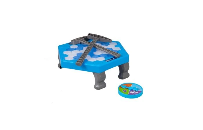 Zorg jij dat de pinguïn niet door het ijs zakt? Om de beurt mag je aan het rad draaien, en je voert steeds de opdracht uit die de pijl aanwijst. De speler, die de pinguïn van het ijs laat vallen, verliest het spel! Voor 2 tot 4 spelers vanaf 5 jaar.