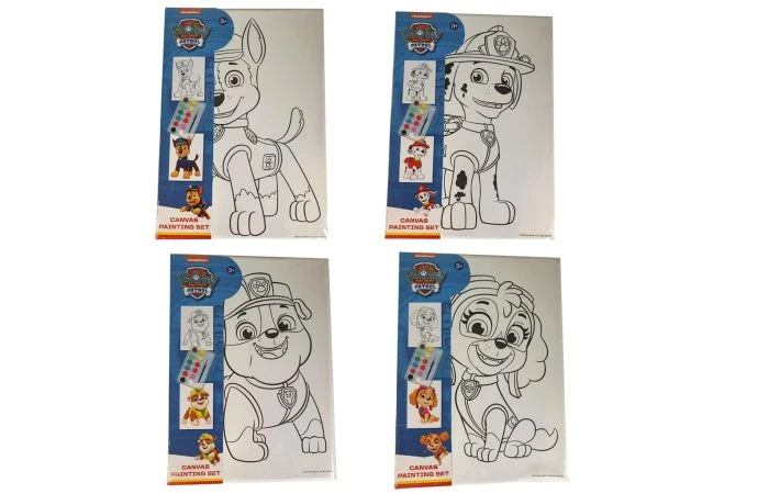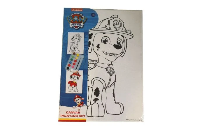 Er zijn 4 verschillende canvas schilderijen, compleet met 12 kleuren waterverf en een penseel. Het plaatje staat voorgedrukt op het canvas. Afmeting van het schilderij: 18 x 25 cm. Wordt 4 assorti in krimpfolie geleverd: Marshall, Skye, Rubble en Chase. Geschikt voor kinderen vanaf 4 jaar.