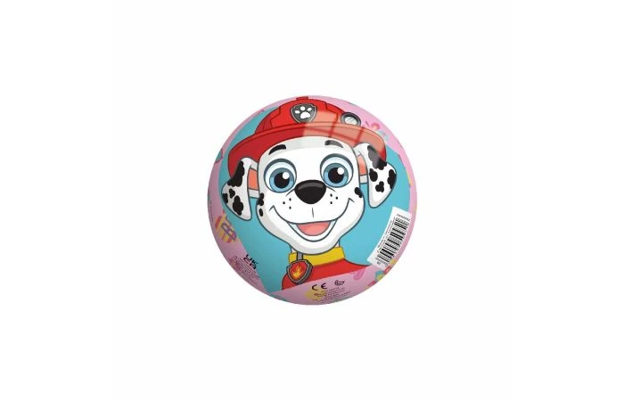Op de bal staat een leuke illustratie van jouw Paw Patrol vriendjes Rubble, Skye, Marshall en Chase.