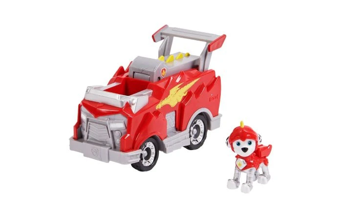 Het voertuig van Marshall is voorzien van drakendetails en heeft een fantastische transformatie van reddingsgereedschap. Marshall is klaar om te hulp te schieten in Barkingburg met zijn Rescue Knights-harnas. Als een drakenvriend in de problemen zit, plaats je Marshall achter het stuur en schiet je supersnel te hulp. Duw de spoiler omlaag om de werper te activeren. Laad de projectielen, twee inbegrepen, en druk op de knop om ze te lanceren. Gebruik je fantasie en bedenk geweldige middeleeuwse reddingsacties, net als die uit de populaire tv-serie. Inhoud: 1 speelgoedvoertuig, 1 figuur, 2 projectielen. Wordt geleverd in touchbox. Geschikt voor kinderen vanaf 3 jaar.