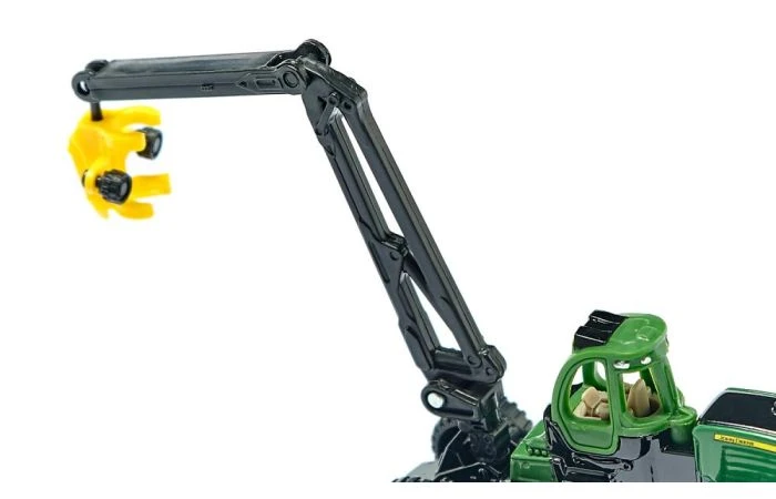 De 3-assige John Deere Harvester 1470E velt bomen binnen enkele minuten, ook in onbegaanbaar gebied. Het model is uitgerust met een draai- en zwenkbare kraan. Boomstammen kunnen in de grijper worden vastgeklemd. Boomstammen zijn bij de leveringsomvang inbegrepen.