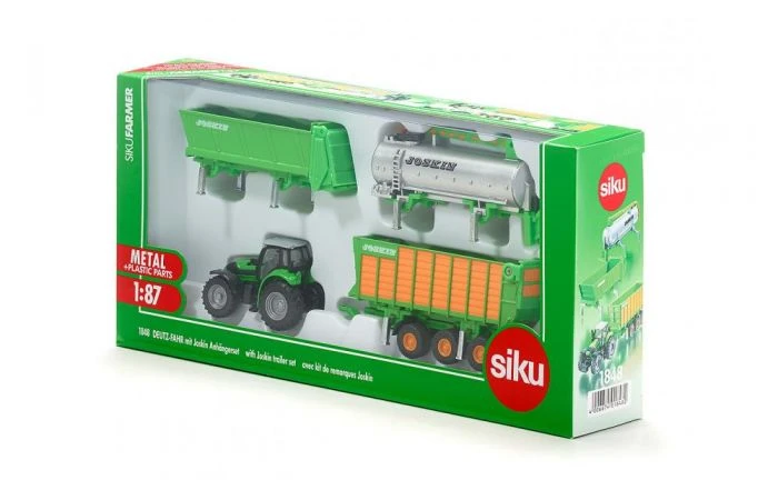 Een speelset van de bijzondere aard is de nieuwe Agroton X720 van Deutz in combinatie met 3 aanhangwagens uit het Joskin-Cargo-programma. Het wisselsysteem bestaat uit een silagewagen-, een giervat- en een universele strooieropbouw. Deze opbouwen kunnen voor de arbeidsinzet op een 3-as.chassis worden gemonteerd. Zijn zij niet in inzet kunnen zij op steunpoten gesteld zonder chassis worden geparkeerd. De opbouwen zijn, tot op het gietvat, verregaand uit metaal. Deutz tractor en 3-as-chassis rollen op banden uit gegommeerd materiaal.