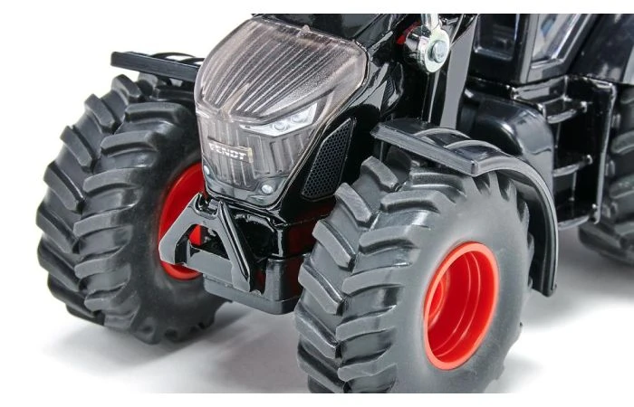 Krachtige Fendt motor met 420 PK, traploos variabele transmissie, groot vermogen en tegelijkertijd de hoogste flexibiliteit – de Fendt 942 is het nieuwste topmodel uit de 900 serie. De moderne grote tractor weet te overtuigen door efficiëntie, comfort en veelzijdigheid en heeft al een groot aantal jury onderscheidingen ontvangen. Als siku model in de speciale kleur zwart met beweegbare frontlader en schop en een trekhaak voor en achter is deze tractor geschikt voor elke toepassing en om veel werk op de boerderij te verzetten. Door de vier grote wielen met zwaar terreinprofiel staat de 942 Vario ook buiten de boerderij altijd op de juiste banden kan in alle speelsituaties op vele manieren worden ingezet!