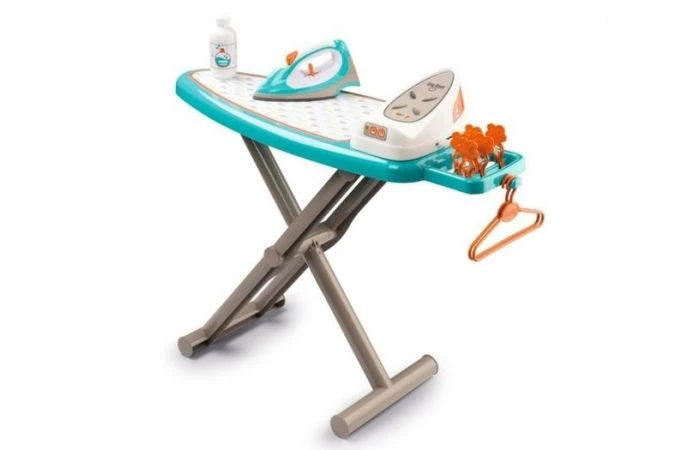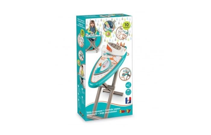 Aan de zijkant van de strijkplank kan er was worden opgehangen met de oranje wasknijpers of aan een kledinghanger. Werkt op 2 x AA batterijen (batterijen zijn niet meegeleverd).