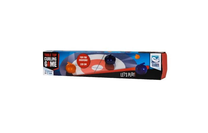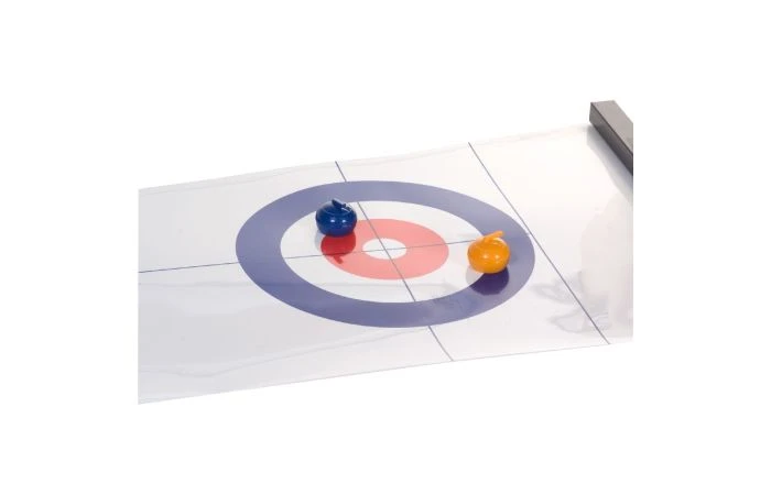 Met dit tabletop curling spel kun je gewoon thuis een potje curlen! Rol de speelmat uit op een tafel, plaats de magnetische strips en je kunt beginnen! Je speelt de curlingstenen door ze met je vingers vast te pakken en over de speelmat te schuiven. Het doel van curling is om punten te scoren, door jouw steen zo dicht mogelijk bij het midden van het huis aan de overkant van het speelveld te schuiven. Het team met de meeste punten aan het eind van een aantal rondes, wint het spel. Geschikt voor 2 tot 8 spelers vanaf 6 jaar.