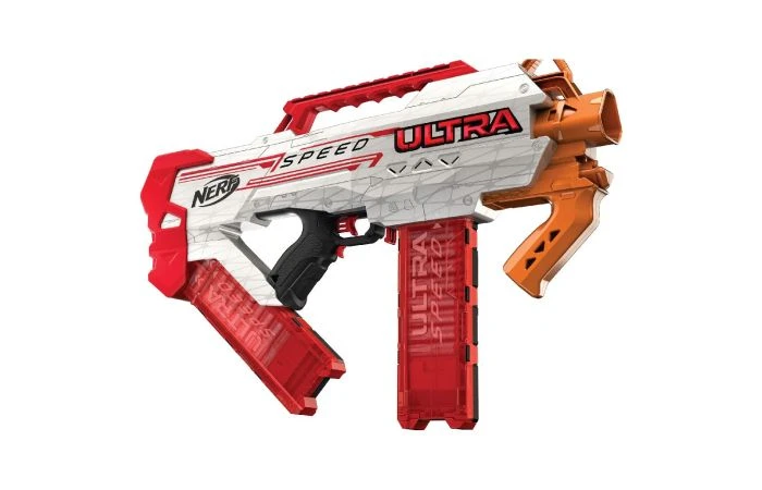 Breng superieure snelheid in de strijd met deze volledig gemotoriseerde blaster. Met 2 magazijnen voor 12 darts , lanceer een dozijn darts op rij uit 1 magazijn, laad het tweede magazijn in de blaster om er nog eens een dozijn af te vuren. Bij de blaster horen 24 Nerf AccuStrike Ultra-foamdarts, de meest nauwkeurige Nerf Ultra-darts. Met deze snelheid en nauwkeurigheid, ben je er helemaal klaar voor om de leiding te nemen in Nerf-gevechten. Inclusief rustgreep om stabiel te richten en geïntegreerde draaghendel. De blaster is alleen te gebruiken met Nerf Ultra-darts. Magazijnen zijn niet uitwisselbaar met andere Nerf Ultra-blasters. De blaster is niet compatibel met andere Nerf Ultra-magazijnen. Het dragen van een bril is aanbevolen (niet inbegrepen). Werkt op 6 C-alkalinebatterijen van 1,5 V (niet inbegrepen). Wordt geleverd in full-colour doos. Geschikt voor kinderen vanaf 8 jaar.